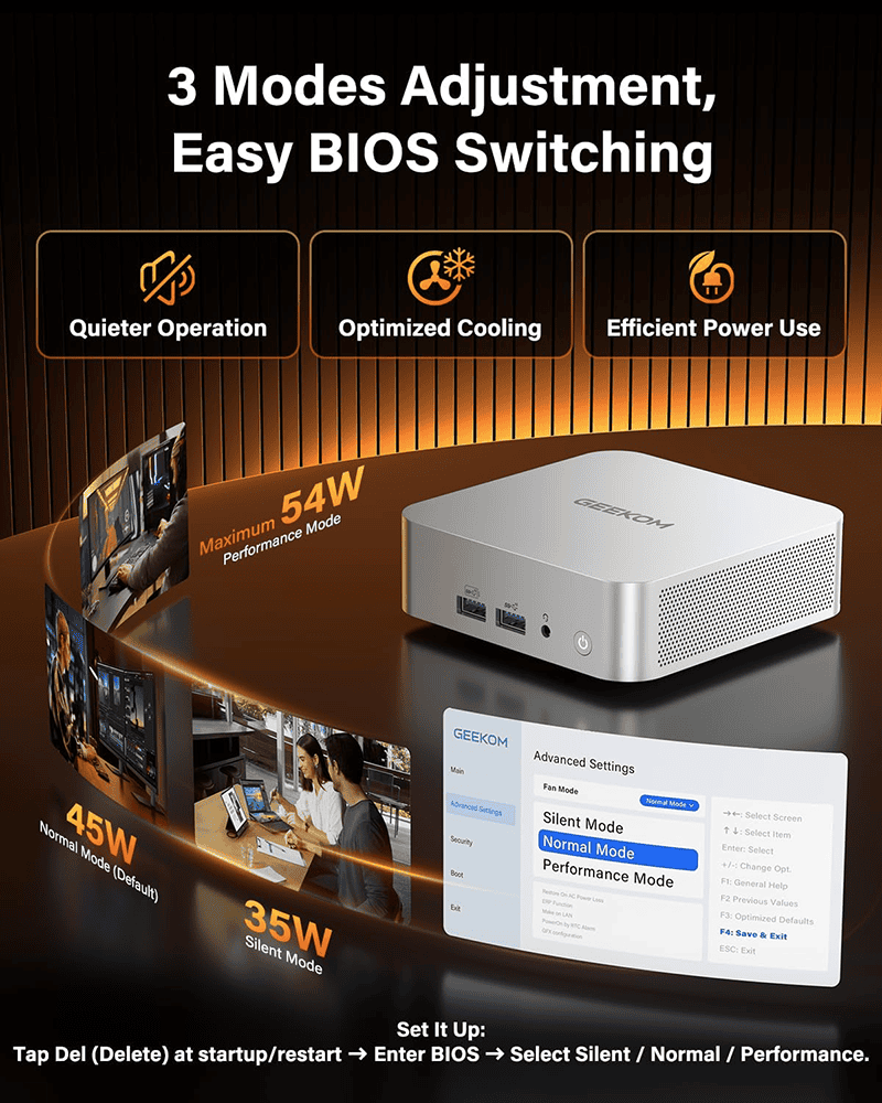 Alimentado por el procesador AMD R7 8745HS (8 núcleos, 16 hilos, hasta 4.9 GHz), la mini PC GEEKOM A8 ofrece un rendimiento excepcional para la creación de contenido y cargas de trabajo exigentes. Maneja sin esfuerzo tareas profesionales como edición de video 4K, diseño gráfico y renderizado 3D, lo que garantiza una respuesta perfecta en aplicaciones como Photoshop, After Effects y DaVinci Resolve.