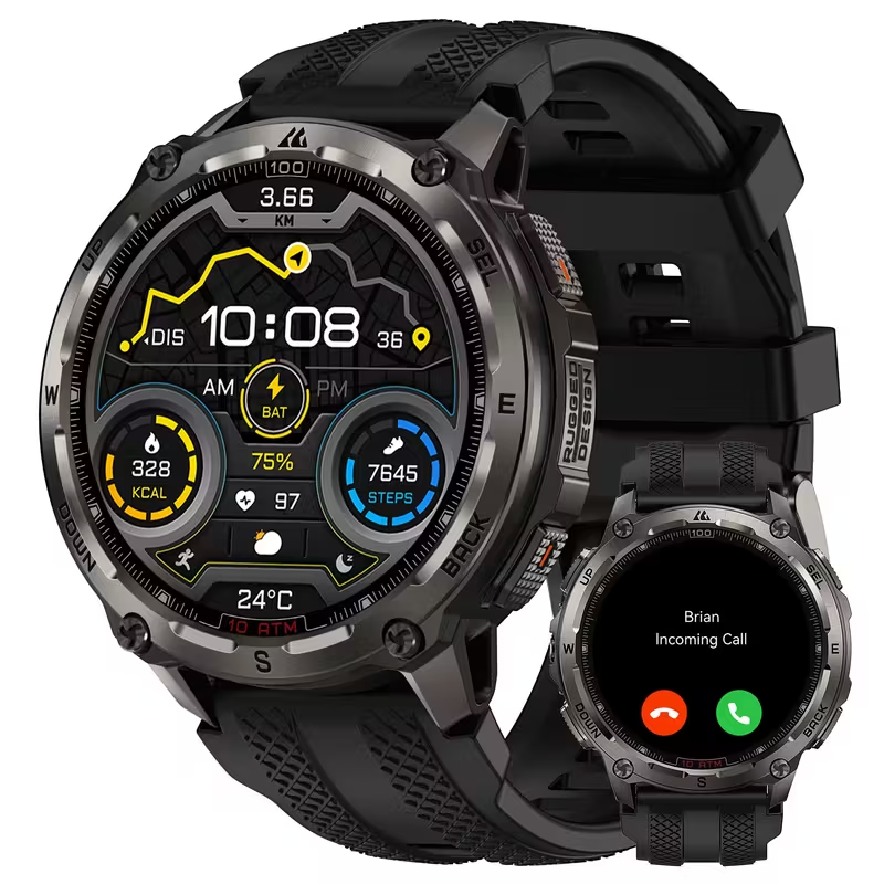 Reloj Inteligente GPS para Hombres con Brújula, Altímetro y Barómetro, Compatible con 6 Sistemas de Posicionamiento Satelital, Batería de 500mAh, Cuerpo de Acero Inoxidable, 10ATM de alta calidad, pantalla AMOLED siempre encendida de 1.43″, 180 Marca KOSPET TANK T4